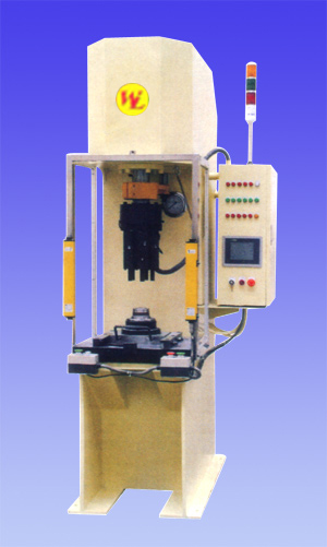 | 本机床是发动机制造业、洗衣机制造业、各种套类、轴承类的典型加工设备。具有很强的通用性,它是在液压机床上增加压力传感器。经过微机组成的数据采集及系统处理,转换成压装力值,进行数字显示,超限时,送出声光报警及停机信号,以达到对压装力实现自动控制的目的,载荷显示控制器,显示清晰,控制准确,反应快,工作稳定可靠,更换不同的传感器及应用软件,用于吨位不同的锻压设备,计数器的应用使每位操作者都知道总数与不合格数,增加了双手按钮,使机器的操作更加安全。 |